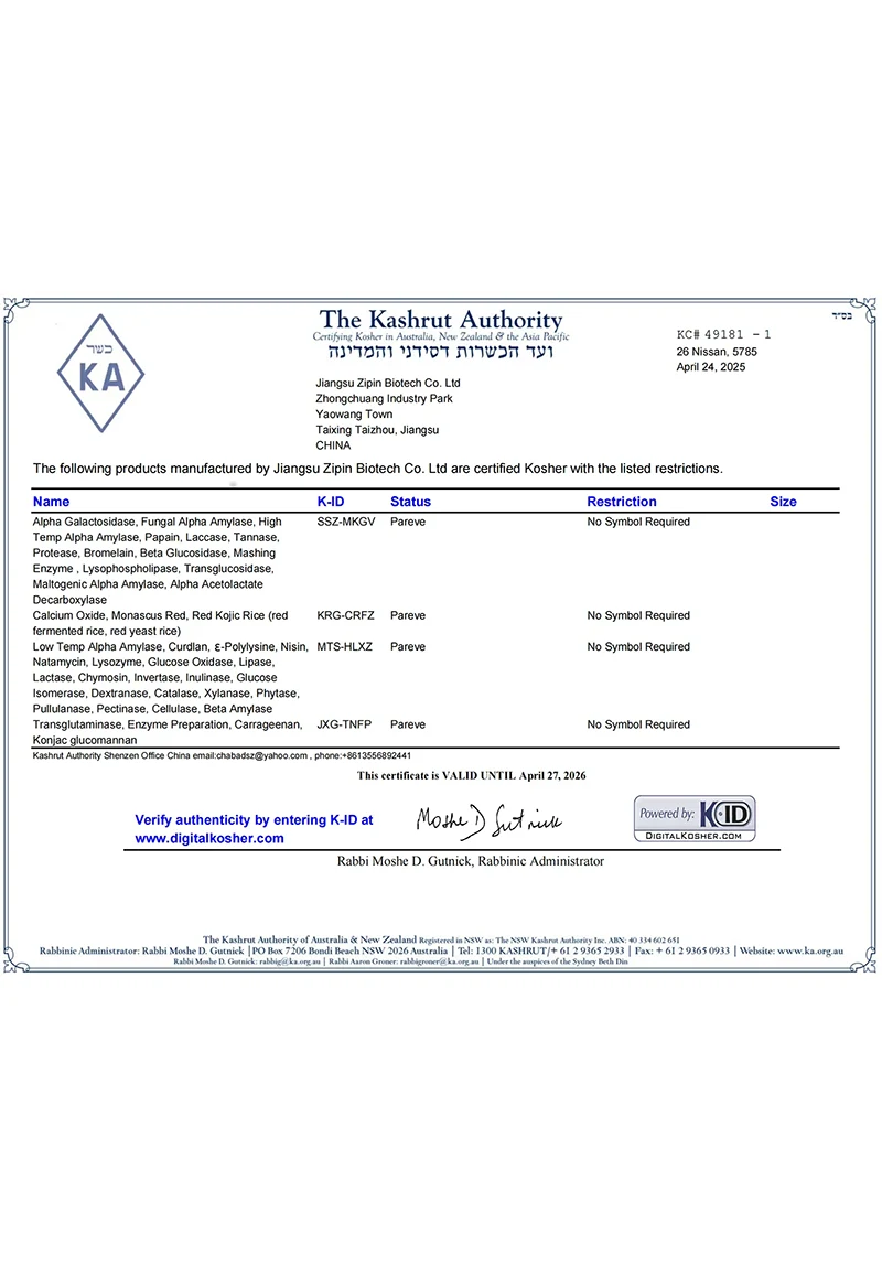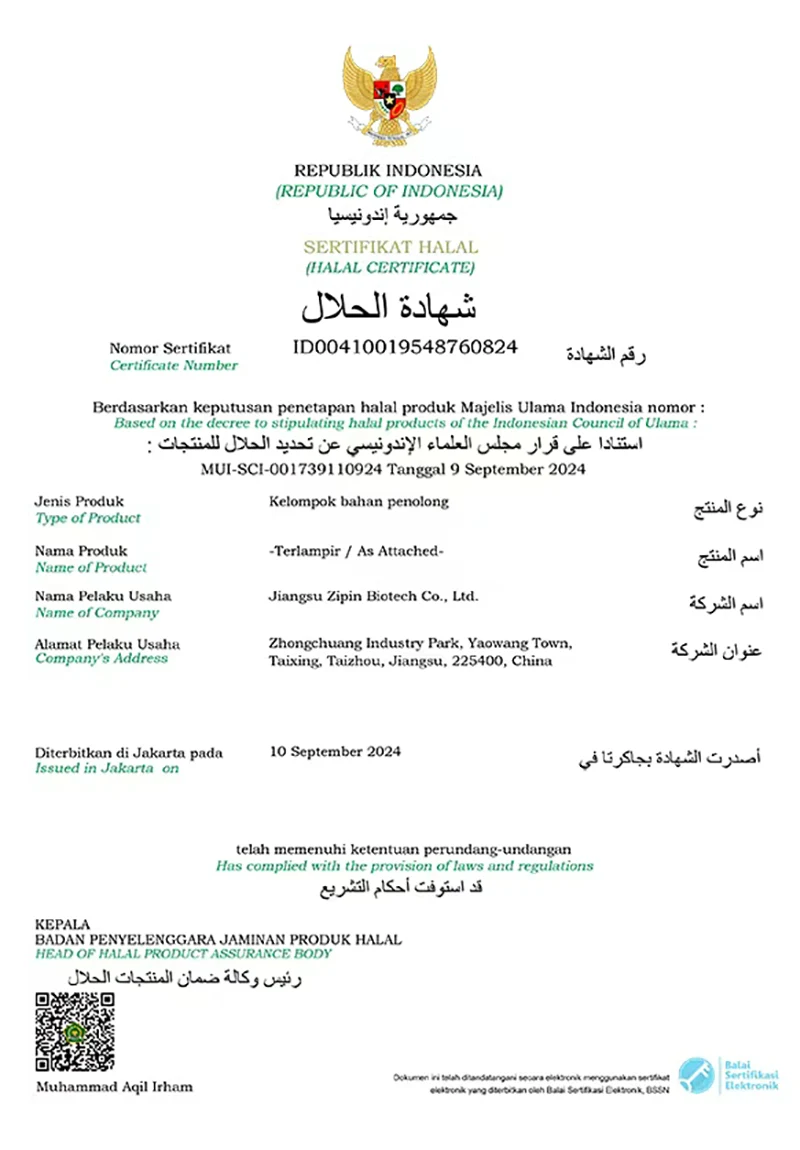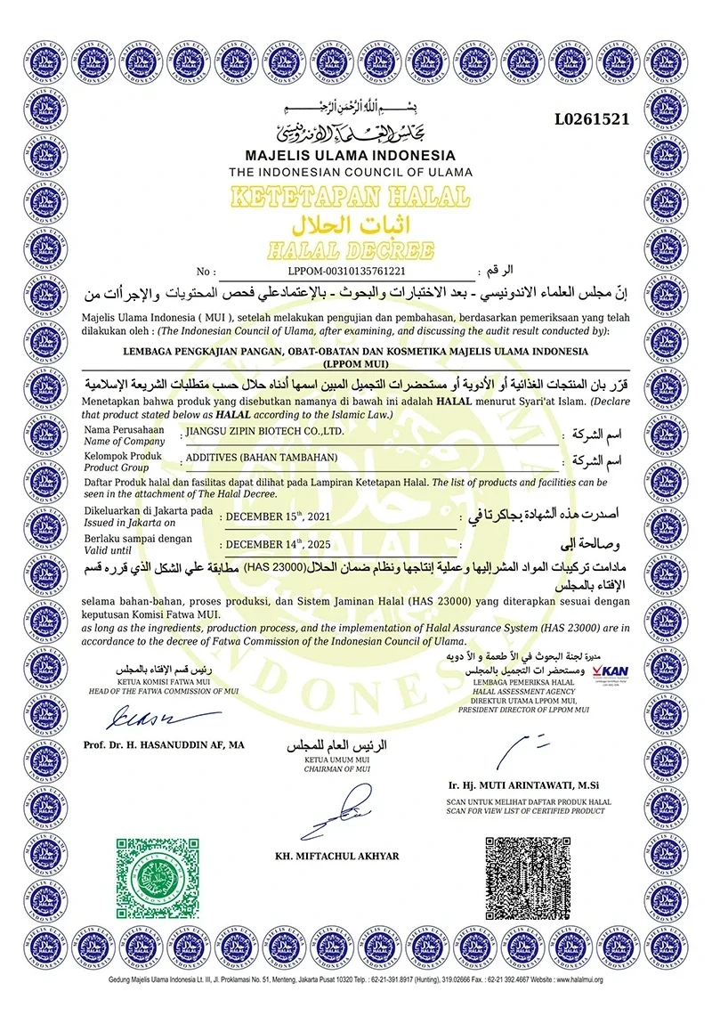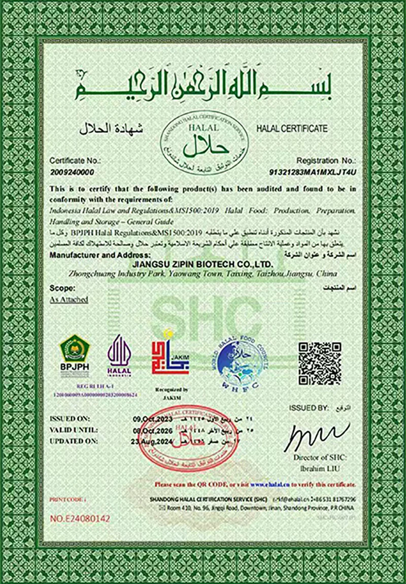 Јиангсу Зипин Биотецх Цо., Лтд. основан је 2016. године, покривајући површину од 20.000㎡. Као модерно приватно предузеће, сада се углавном бавимо истраживањем и развојем, производњом и продајом адитива за храну. Наши главни производи суТрансглутаминаза, Цурдлан, ε-полилизин, Нисин, Натамицин и други адитиви за храну.